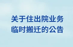 尊敬的患者及家属:为提升患者就诊体验,医院住院楼一楼收费大厅将于9月30日至10月30日进行保暖改造。届时,住院楼西门将暂停使用,住出院处相关业...